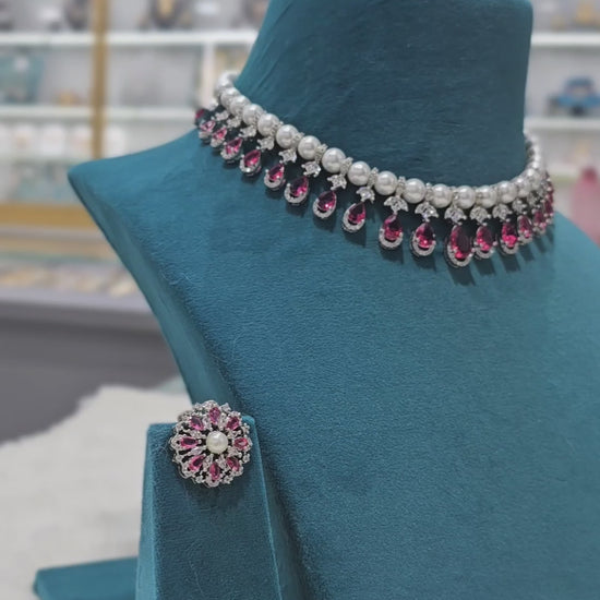 AD white moti Ruby or green dimond set