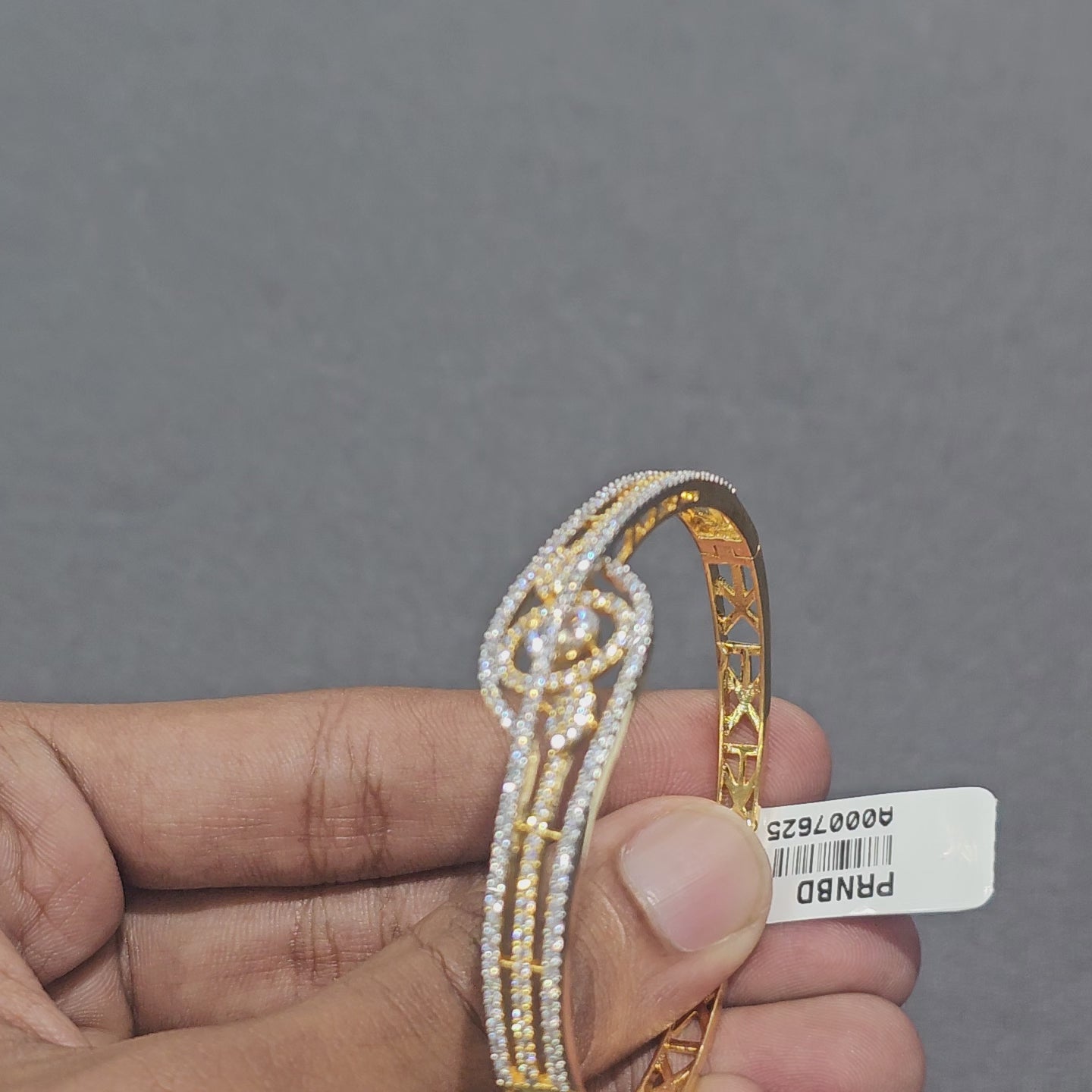 A refined gold-tone cuff with twin pavé lanes converging into an interlocking orbit motif for a luxe, minimalist finish. Lightweight and versatile, ideal for festive outfits, office wear, and evening looks.