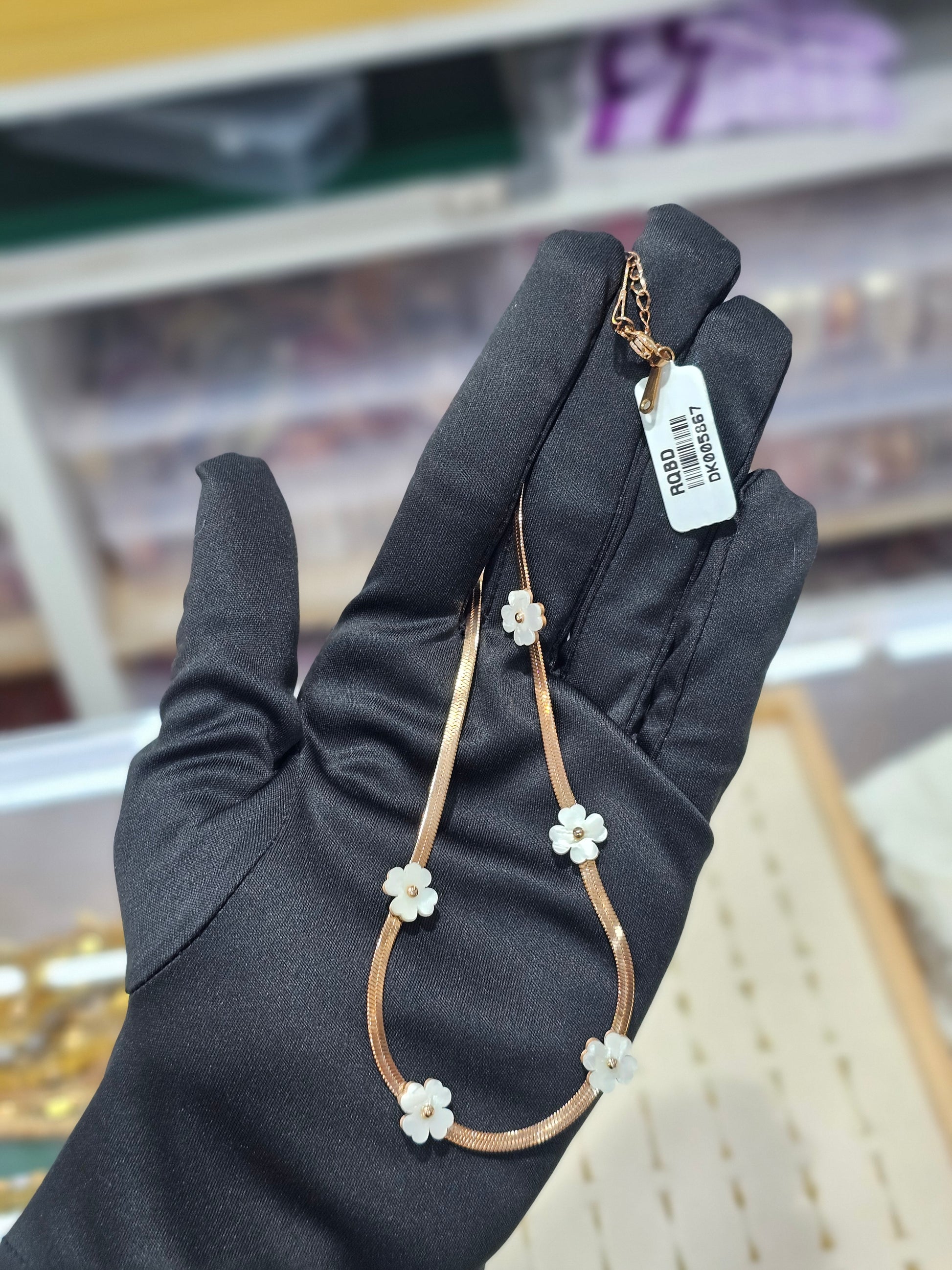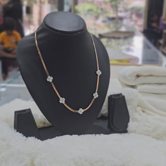 Slim gold-tone chain accented with petite cubic zirconia daisy motifs for a subtle everyday shimmer, crafted in a lightweight, durable alloy build.