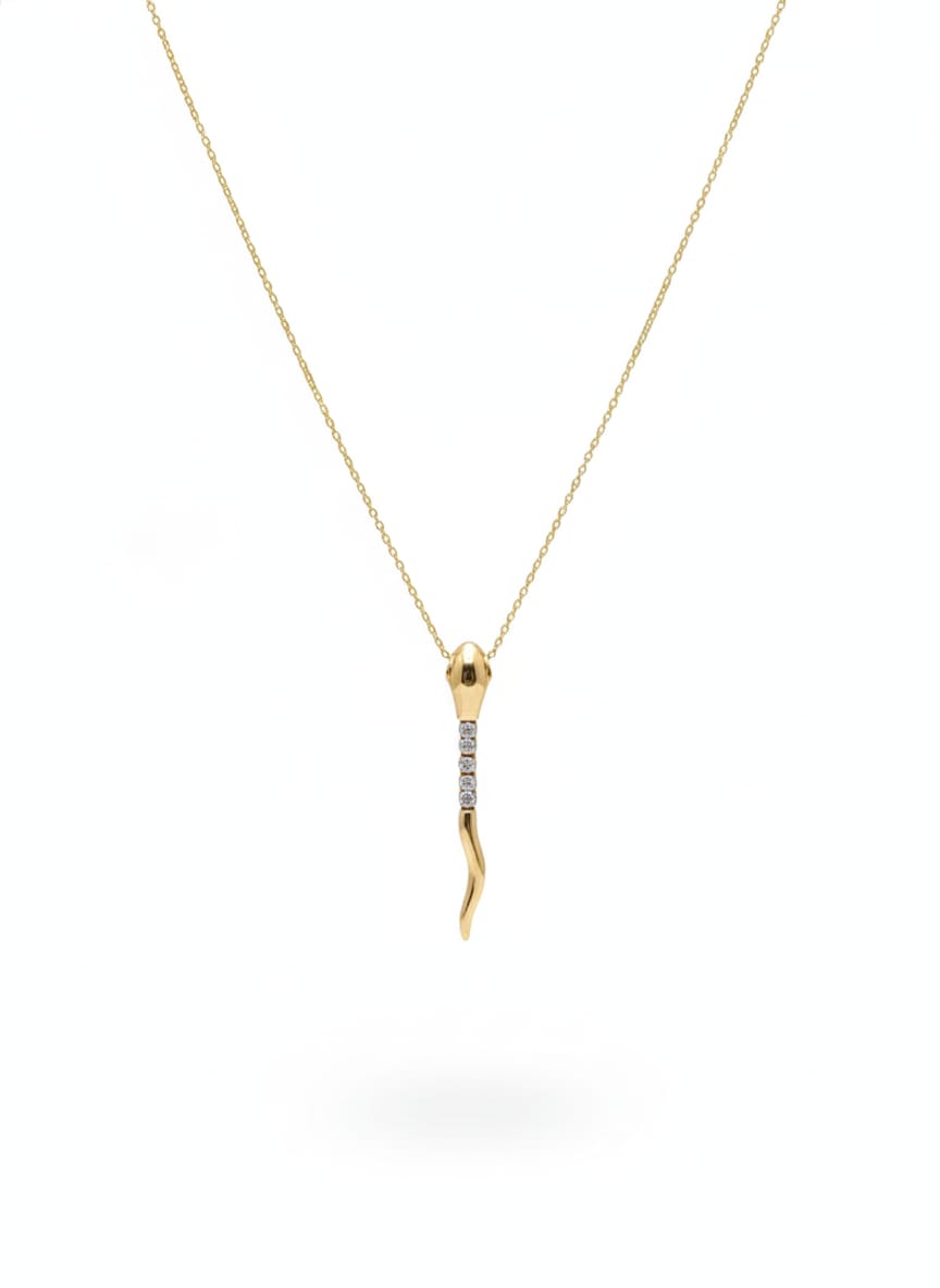 Gold Tone Snake Pendent Necklace With Crystal stone