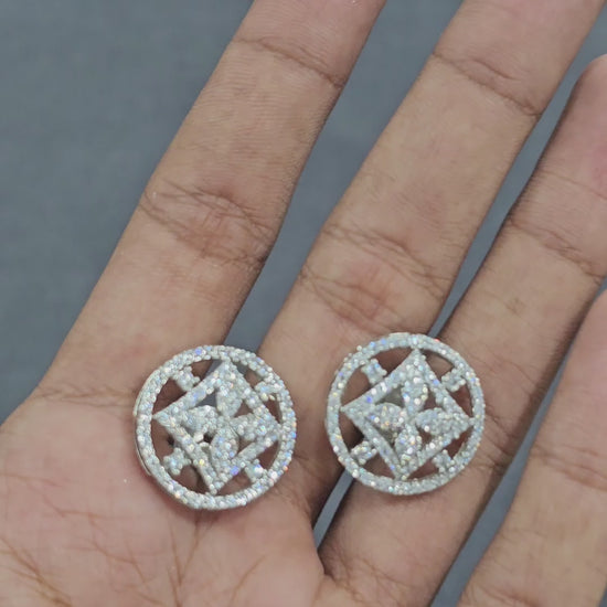 Boasts a dazzling circular mandala design entirely paved with brilliant cubic zirconia stones, offering a rich sparkle for formal or festive occasions.