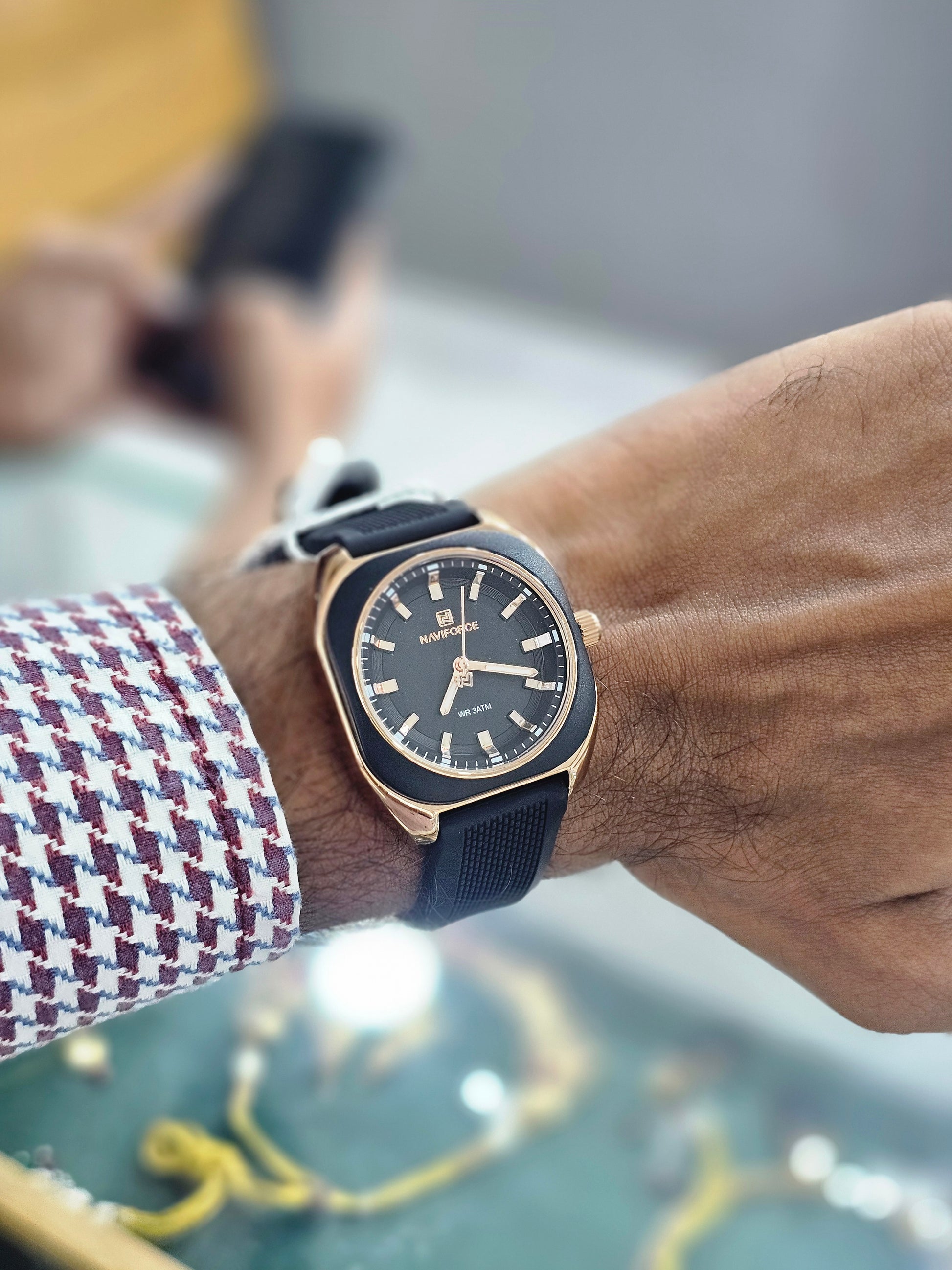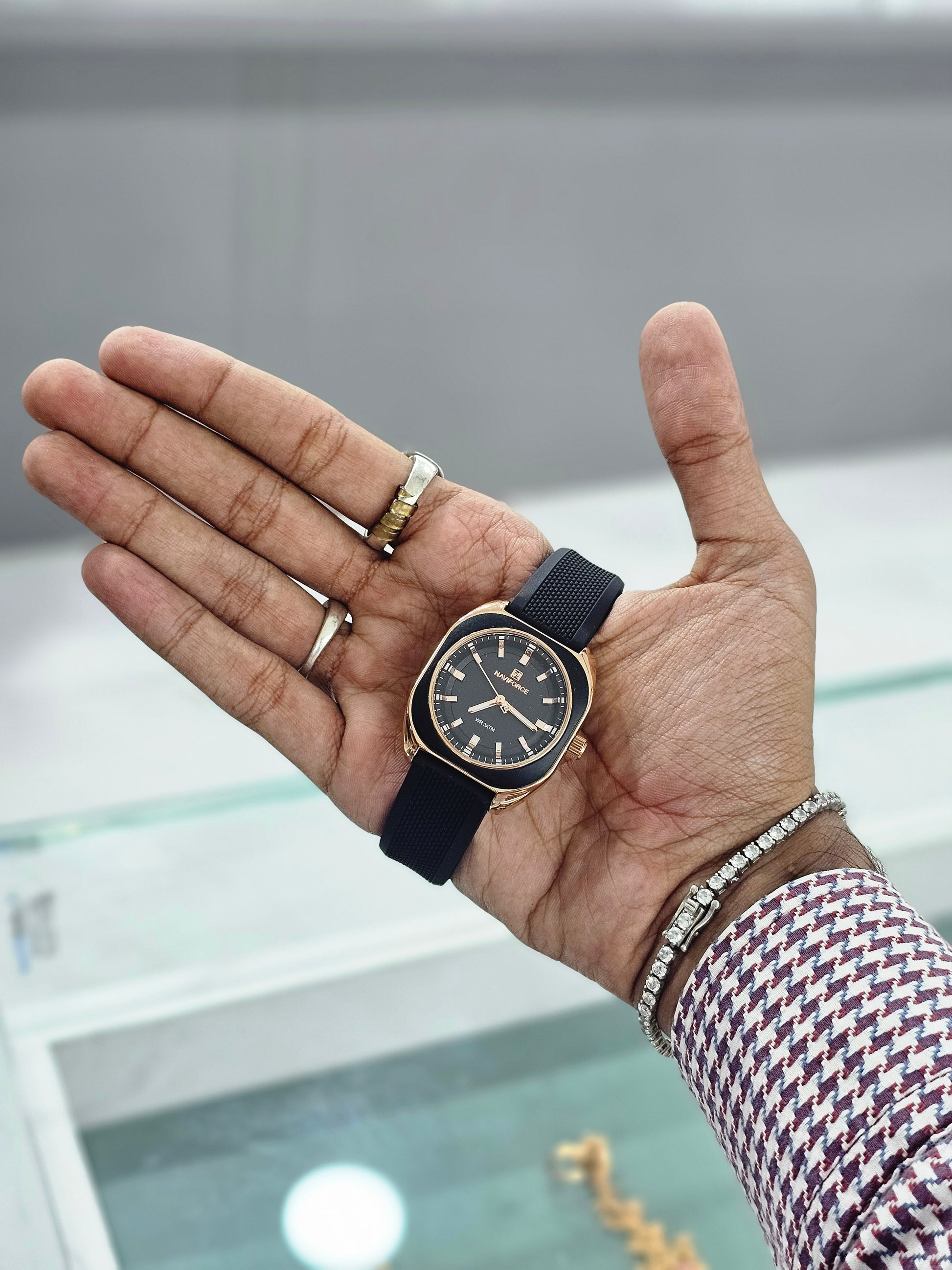 NAVIFORCE Rosegold square case with Round black dial
