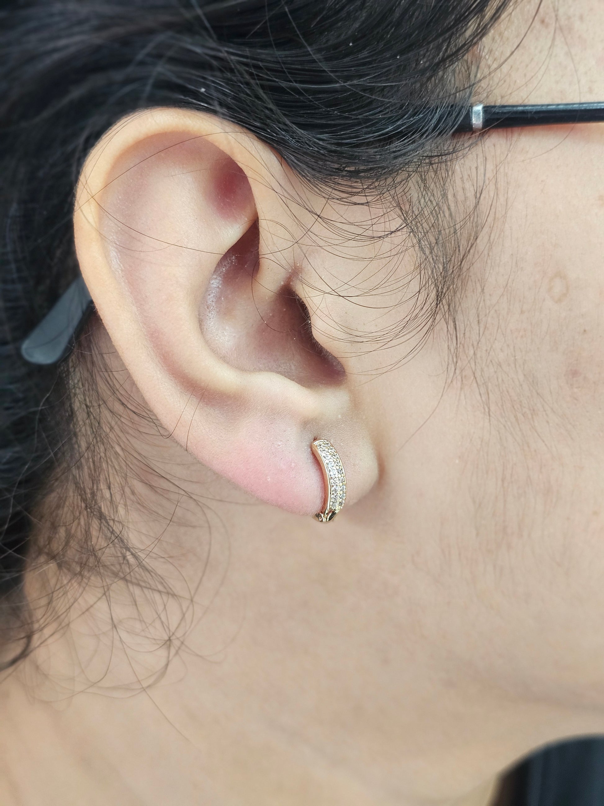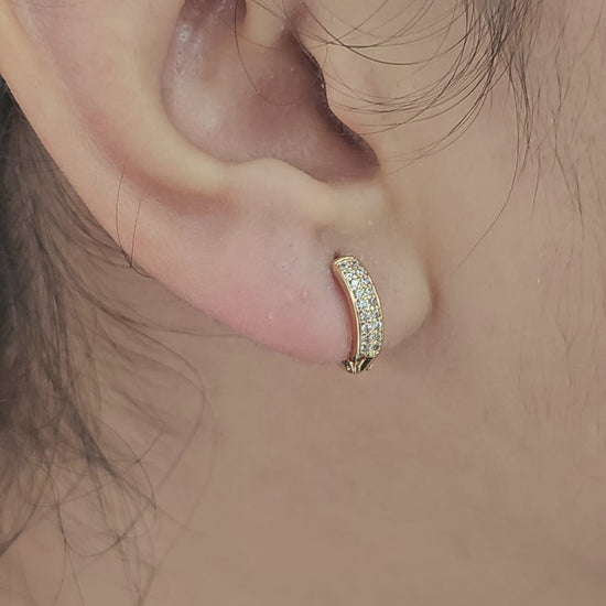 A sleek mini hoop adorned with shimmering pave cubic zirconia for refined everyday sparkle in a lightweight, durable alloy build.